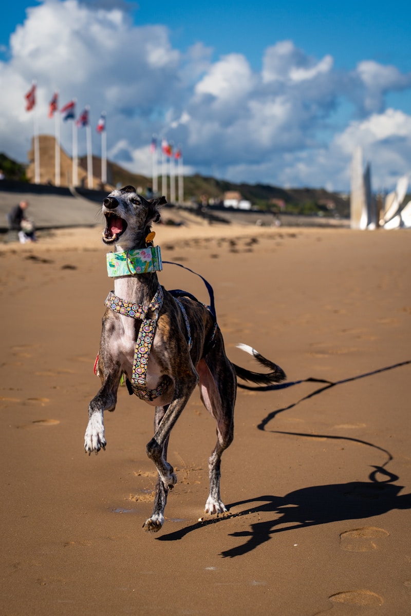 Découvrez nos accessoires pour lévriers. 100% des bénéfices sont reversés pour leur sauvetage.